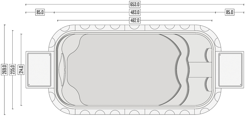 | 2 καθήσματα υδρομασάζ 8 ακροφύσια συνολικά | 1 αντλία NCC 3cv 40m3 /h |