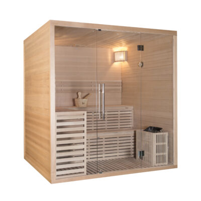 Εσωτερική φινλανδική σάουνα για 5-6 άτομα, φτιαγμένη από καναδικό ξύλο πεύκου.