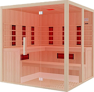 Χωρητικότητα: 5 , 6 ατόμων Εσωτερικού χώρου 8 τεμάχια θερμαντήρες υπέρυθρης σάουνας RedLight 2,8 kW / 230 V (3 350W, 3 350W, 2 350W) Θέρμανση για φινλανδική σάουνα: 8 kW / 380 V Κατασκευασμένη από καναδικό πεύκο Hemlock Πόρτα και πλευρές από γυαλί ασφαλείας πάχους 6 mm Φωτισμός LED χρωματοθεραπείας Δέκτης Bluetooth (για αναπαραγωγή μουσικής) 2 ηχεία Εξαερισμός ενσωματωμένος Με μετρητή θερμοκρασίας & υγρασίας ξύλινος κουβάς με κουτάλα, κλεψύδρα & πέτρες lava (ηφαιστειογενείς) Διαστάσεις: 204,3 x 200,8 x 205,5 cm