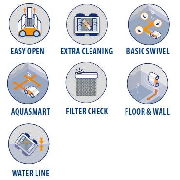 Pulit advance 5+ Σκούπα-ρομπότ κατάλληλη για πυθμένα, τοιχία και ισαλο γραμμή. Καθαρίσει σε χρόνο ρεκόρ λόγω του συστήματος Aquasmart και του συστήματος Gyro* που διαθέτει. Έχει extra παλλόμενη βούρτσα που βουρτσίζει καθ?ολη την διάρκεια της κίνησης του ρομπότ(δείτε δίπλα στην περιγραφή τις εικόνες). Εργονομικά φίλτρα -τύπου Cartridge (micro fabric)-εύκολα καθοριζόμενα (που ανοίγουν από πάνω) καιβούρτσες από Pva κατάλληλες για όλες τις επιφάνειες. Διαθέτει δυο προγράμματα καθαρισμού 1,5/2 ωρών, 18 m καλώδιο και λυχνία Led προειδοποίησης γεμίσματος φίλτρων. Ρυθμιζόμενα στόμια αναρρόφησης καθ?υψος (για καλύτερη εφαρμογή του ρομπότ). Συνοδεύεται από καρότσι μεταφοράς, Κατάλληλη για επιφάνεια πισίνας 80 m2 Gyro* : κάθε 5 λεπτά το ρομπότ σταματάει αφού έχει φύγει από τον τοίχο και ελέγχει εάν πηγαίνει ευθεία, εάν όχι τότε κάνει επιδιόρθωση της κίνησης του και συνεχίζει. Με 2 χρόνια εγγύηση από την Fluidra Hellas ΑΕ (Astralpool) και πλήρη κάλυψη ανταλλακτικών.
