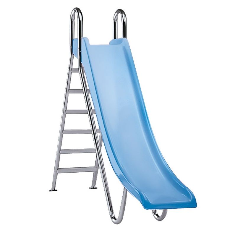 Τσουλήθρα πισίνας ευθύ μοντέλο. Σε απαλό γαλάζιο χρώμα από πολυεστέρα και FV. Σκαλοπάτια από πολυπροπυλένιο και FV. Χειρολαβές από inox γυαλιστερό. Εξοπλισμένη με παροχή νερού για ευκολότερη ολίσθηση. Στην συσκευασία περιλαμβάνονται τα εξαρτήματα στήριξης. Διαθέσιμη κατόπιν παραγγελίας.